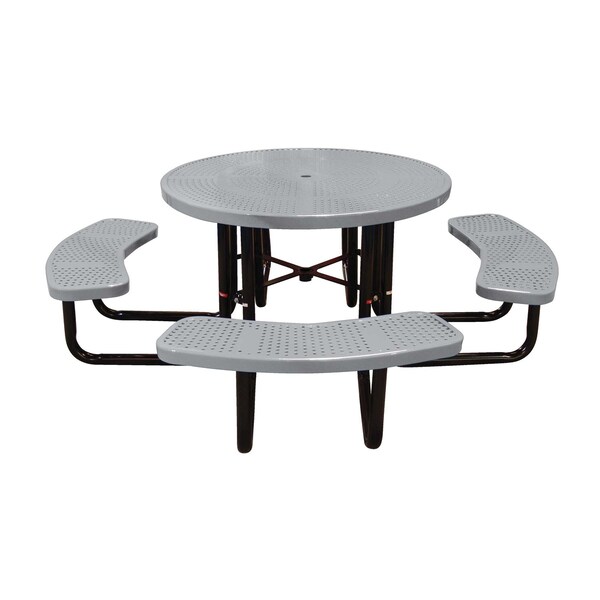 46" Round Picnic Table, Perforated Metal, Portable, Gray