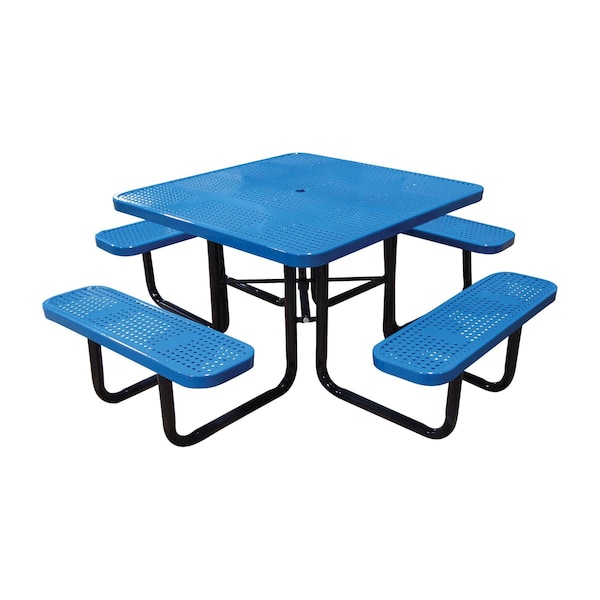 46" Square Picnic Table, Perforated Metal, Portable, Blue