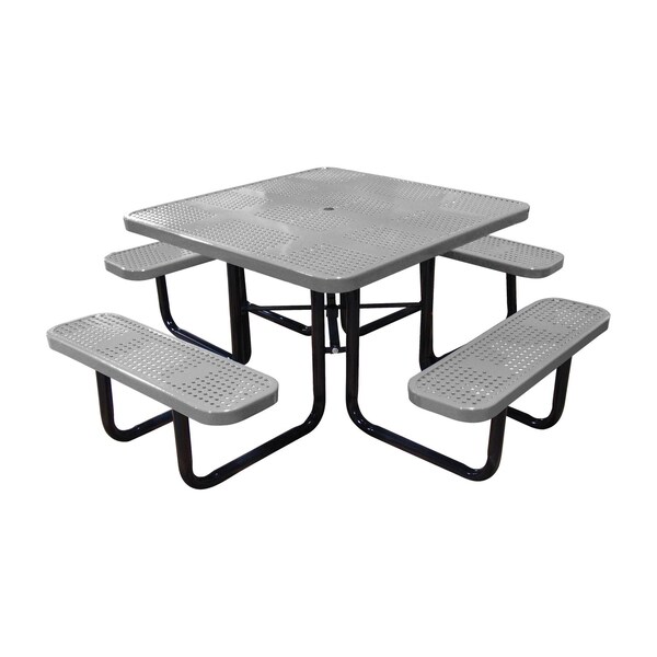 46" Square Picnic Table, Perforated Metal, Portable, Gray