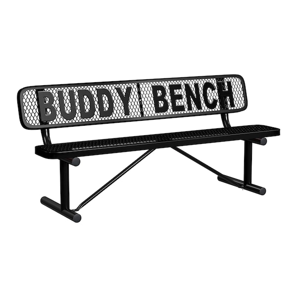 6' Personalized Standard Buddy Bench Bench With Back, Expanded Metal, Portable, Black