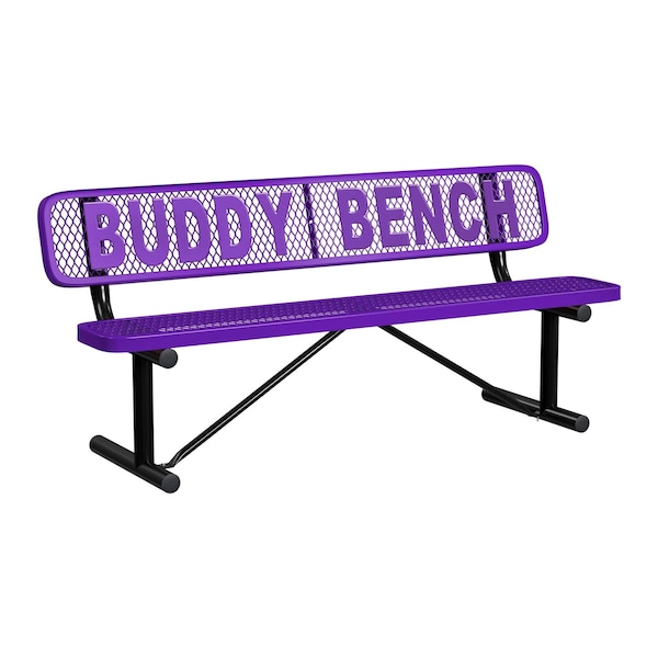 6' Personalized Standard Buddy Bench Bench With Back, Expanded Metal, Portable, Purple