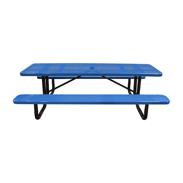 8' Standard Picnic Table, Perforated Metal, Portable, Blue