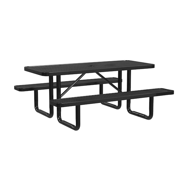 Rectangle Picnic Table, Black, Surface Mount, 6 ft L