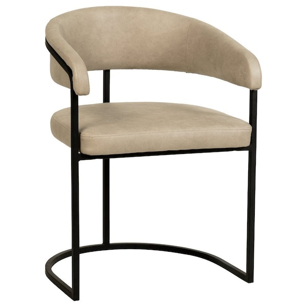 - This modern dining chair has a U-shaped cantilever design with a powder-coated iron frame. The curved frame offers consistent support from the base to the back and includes armrests. The strong iron construction supports up to 330 pounds and is coated to resist rust, scratches, and wear.