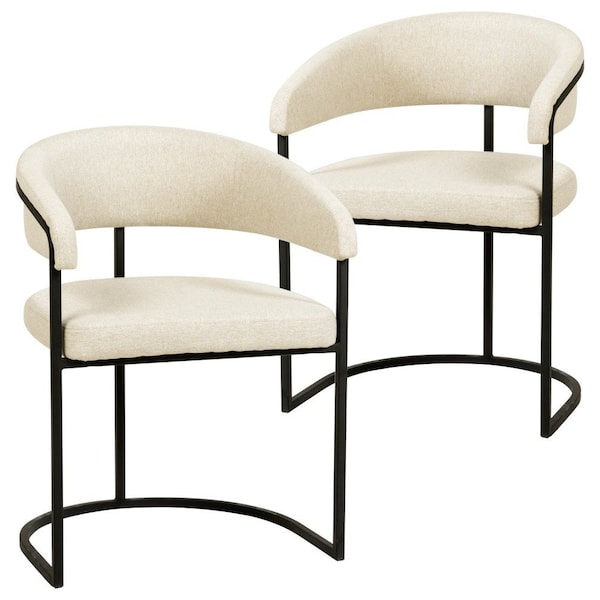 - This modern dining chair has a U-shaped cantilever design with a powder-coated iron frame. The curved frame offers consistent support from the base to the back and includes armrests. The strong iron construction supports up to 330 pounds and is coated to resist rust, scratches, and wear.