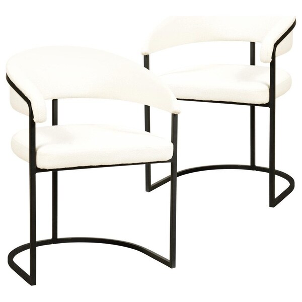 - This modern dining chair has a U-shaped cantilever design with a powder-coated iron frame. The curved frame offers consistent support from the base to the back and includes armrests. The strong iron construction supports up to 330 pounds and is coated to resist rust, scratches, and wear.