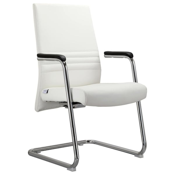 Aleen Office Chair in Upholstered Leather and Iron Frame, White