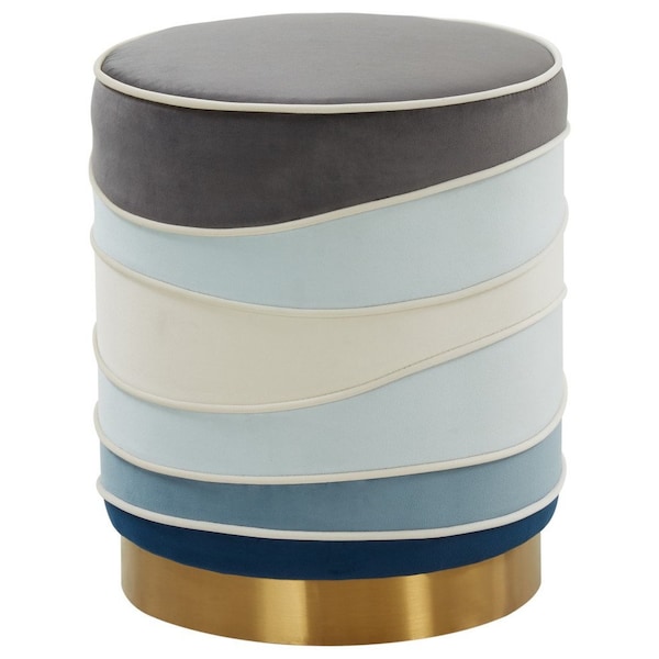 This modern round ottoman is the perfect addition to your living area, bedroom, or bathroom. With the Multicolored Velvet you can energize your living room decor, it's spooled abstract coastal design and wavy piping makes for an enchanting addition to your living room, lounge room, bedroom, or it can double as an elegant, comfy vanity seat for the bathroom!