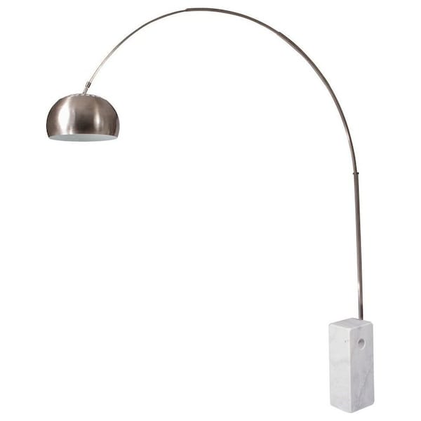Mid-century modern design, this decorative arc light will brighten any room with its refined style. A thick Italian Marble base holds the tall stainless steel arm in place while a white reflective shade interior adds a warm glow to any room you decide to place it in.The base of light source travels from one part of the room and spans to its desired location all while adding a modern flair. More often than not, iconic pieces like the arched Arco Lamp take hold and become classics-not on looks alone, but by offering practical solutions to design difficulties