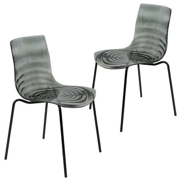 Astor Plastic Dining Chair with Black Steel Base in Transparent Black, 2PK