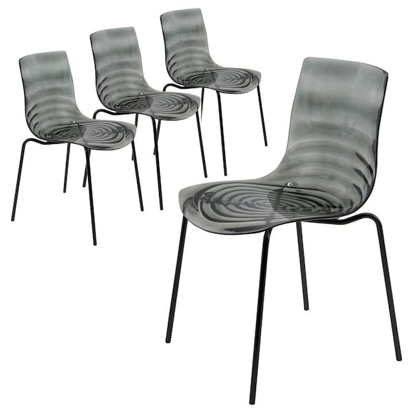 - This modern dining chair features a sleek, transparent seat with a unique ripple pattern for added sophistication. Its minimalist design offers ergonomic support, ensuring comfortable seating with a touch of visual interest.