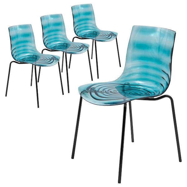 - This modern dining chair features a sleek, transparent seat with a unique ripple pattern for added sophistication. Its minimalist design offers ergonomic support, ensuring comfortable seating with a touch of visual interest.