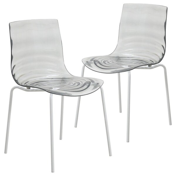 Astor Plastic Dining Chair with White Steel Base in Transparent Black, 2PK