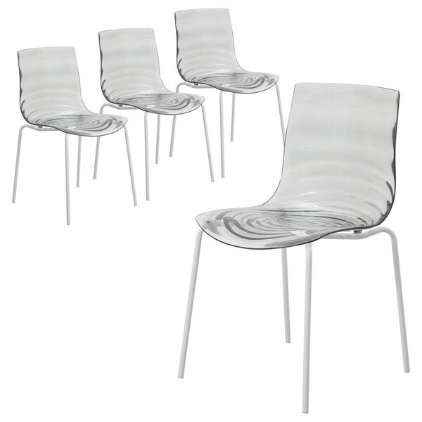 Astor Plastic Dining Chair with White Steel Base in Transparent Black, 4PK