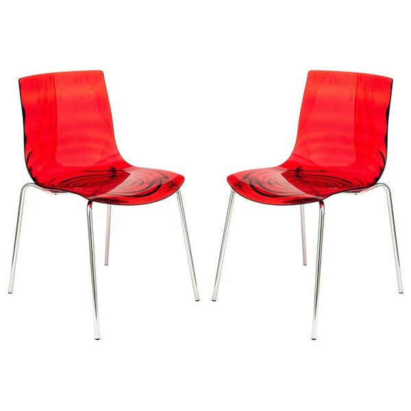 Astor Water Ripple Design Dining Chair, Transparent Red, 2PK