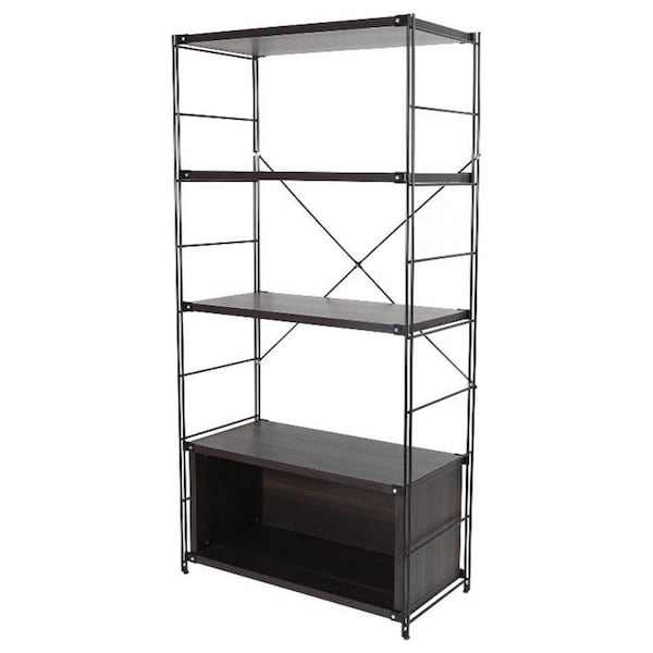 Brentwood Etagere Bookcase with Black Steel Frame & Melamine Board Shelves, Dark Walnut (Discontinued)