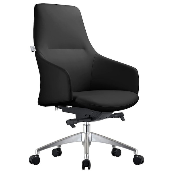 Celeste Office Chair in Upholstered Leather and Iron Frame with Swivel and Tilt, Black