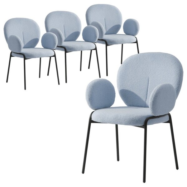 Celestial Boucle Dining Arm Chair, Black Iron Frame with Blue Fabric, 4PK