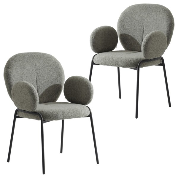 Celestial Boucle Dining Arm Chair, Black Iron Frame with Green Fabric, 2PK