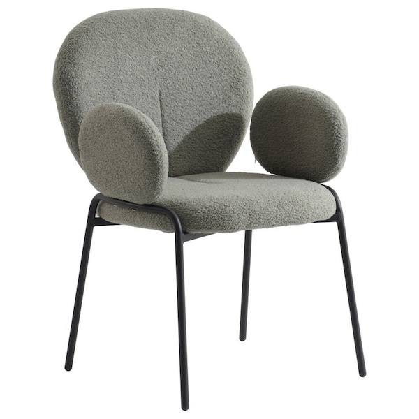 Celestial Boucle Dining Arm Chair with Black Powder Coated Iron Frame, Green