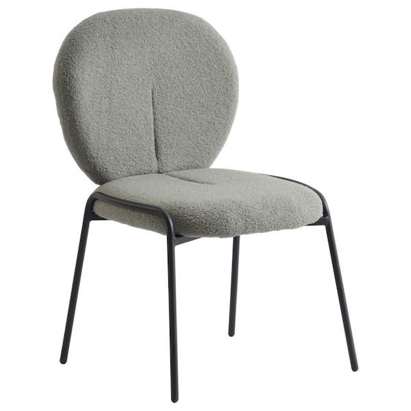 Celestial Boucle Dining Side Chair with Black Powder Coated Iron Frame, Green