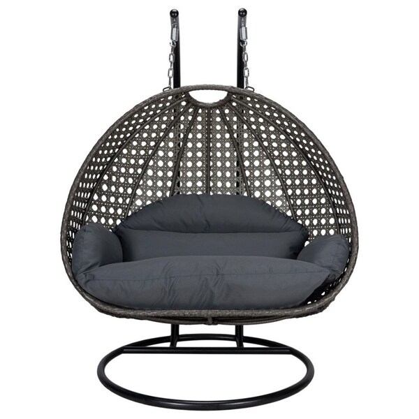 Charcoal Wicker Hanging 2 person Egg Swing Chair, Dark Grey