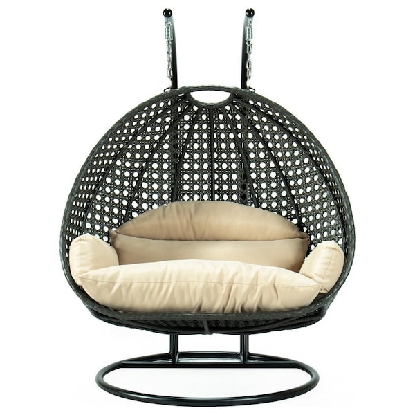 Charcoal Wicker Hanging 2 person Egg Swing Chair with Beige Cushions