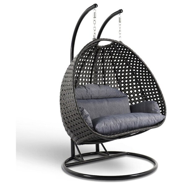 This fun egg-shaped porch swing chair which fits 2 people comfortably was built to last in the outdoors with its strong durable iron frame it will be perfect for all weathers. Sit in luxurious comfort while surrounded by the peace and beauty of your backyard, or enjoy a good book indoors with this comfortable hanging chair.
