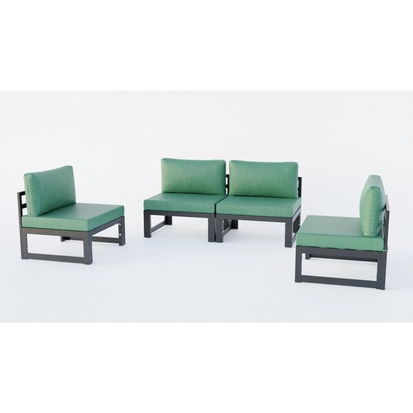 Chelsea 4-Piece Middle Patio Chairs Black Aluminum With Green Cushions (Discontinued)