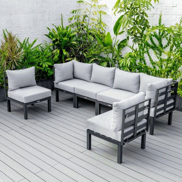 Chelsea 6-Piece Patio Sectional Black Aluminum With Cushions, Light Grey