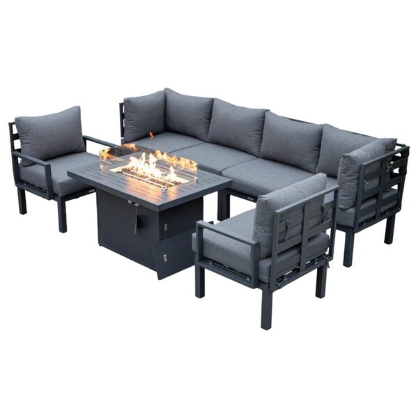 Chelsea 7-Piece Patio Sectional And Fire Pit Table Black Aluminum With Cushions, Black