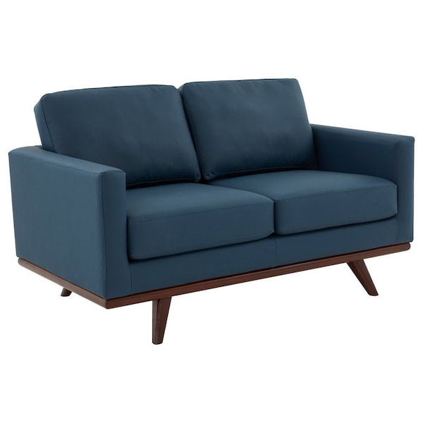 Chester Modern Leather Loveseat with Birch Wood Base, Navy Blue