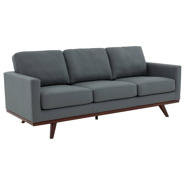 Chester Modern Leather Sofa with Birch Wood Base, Grey