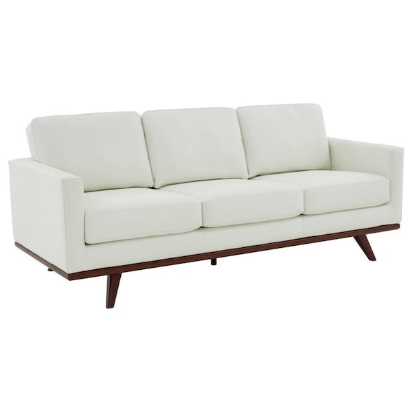 Chester Modern Leather Sofa with Birch Wood Base, White