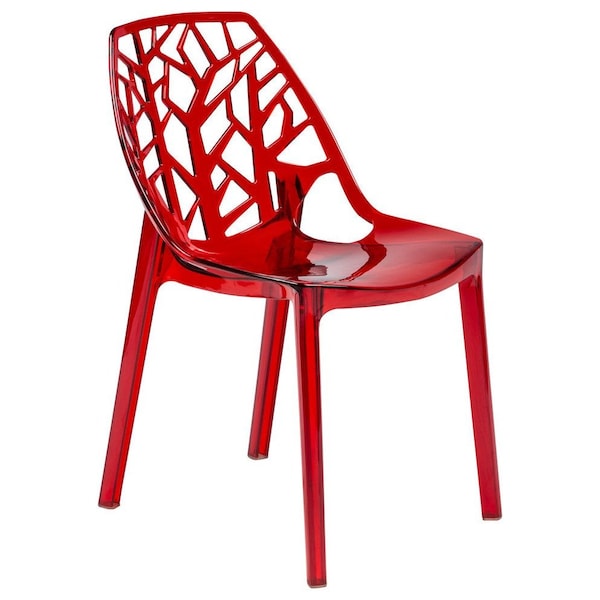 Cornelia Modern Stackable Dining Chair with Cut-Out Tree Design, Transparent Red