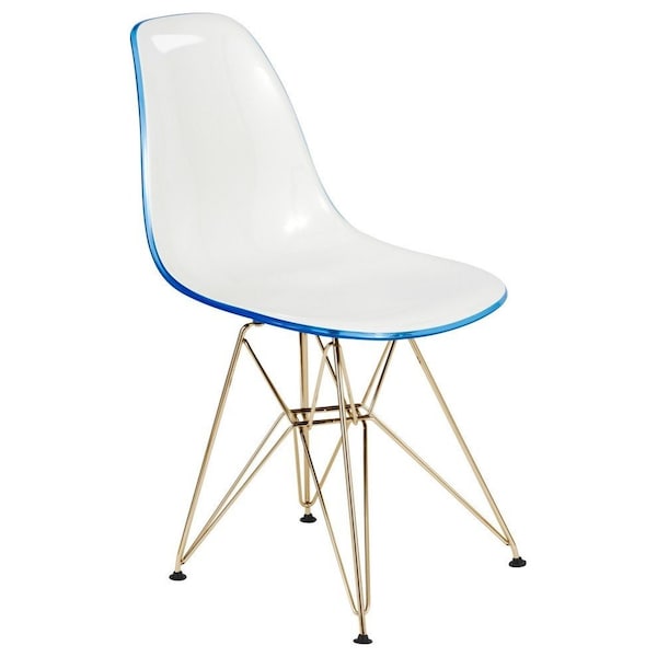 Cresco Molded 2-Tone Eiffel Dining Side Chair with Gold Base, White Blue (Discontinued)