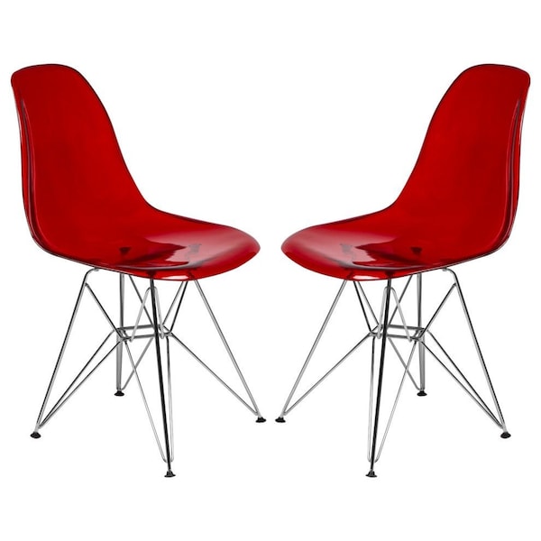 Cresco Plastic Dining Side Chair, Transparent Red, 2PK