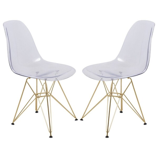 Cresco Plastic Dining Side Chair with Gold Base, Clear, 2PK