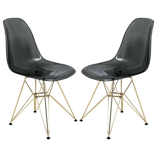 Cresco Plastic Dining Side Chair with Gold Base, Transparent Black, 2PK