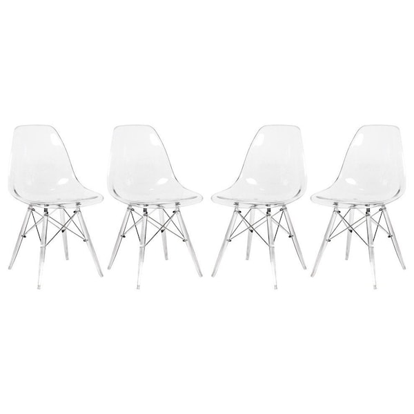 Dover Dining Side Chair with Acrylic Legs, Clear, 4PK