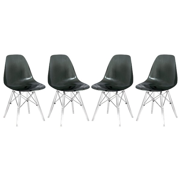 Dover Dining Side Chair with Acrylic Legs, Transparent Black, 4PK