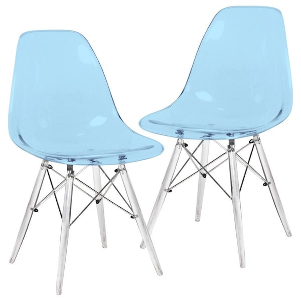 Dover Dining Side Chair with Acrylic Legs, Transparent Blue, 2PK