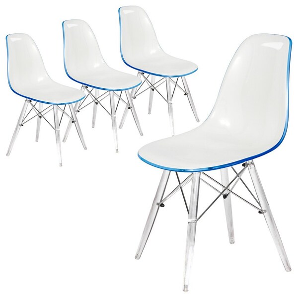 Dover Dining Side Chair with Acrylic Legs, White Blue, 4PK (Discontinued)