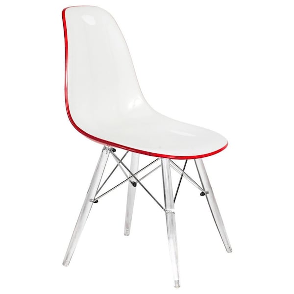 Dover Dining Side Chair with Acrylic Legs, White Red (Discontinued)