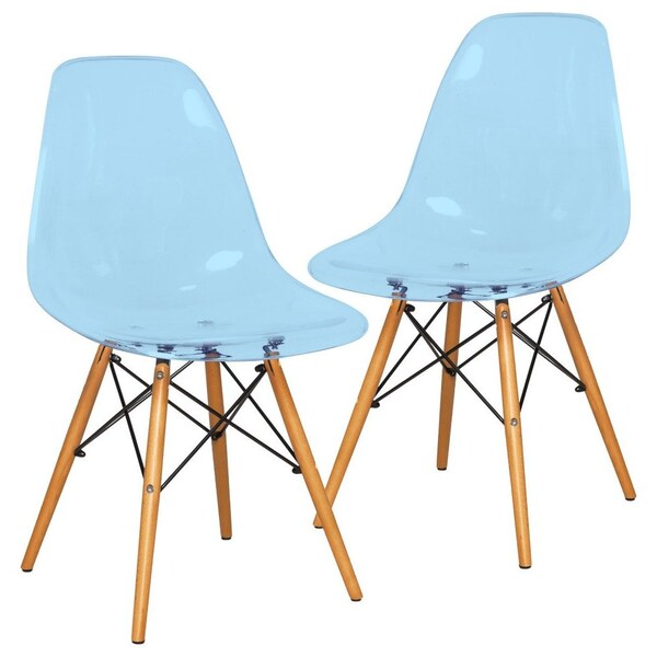 Dover Plastic Dining Side Chair with Wooden Legs, Transparent Blue, 2PK