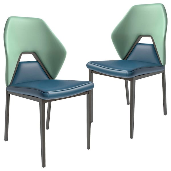 Eclat Modern Leather Dining Side Chair with Iron Legs in Green/Blue, 2PK (Discontinued)