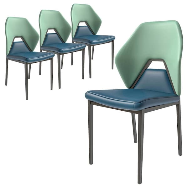 Eclat Modern Leather Dining Side Chair with Iron Legs in Green/Blue, 4PK (Discontinued)