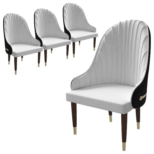 Elara Collection Wooden Dining Chair in Black/White, 4PK