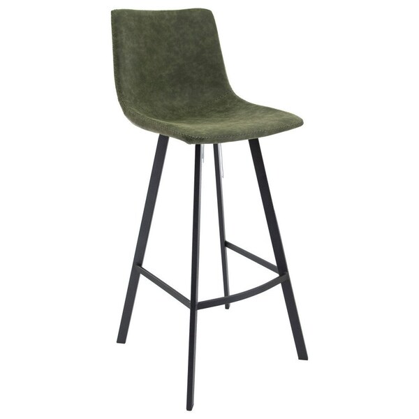 Elland Modern Upholstered Leather Bar Stool with Iron Legs and Footrest, Olive Green