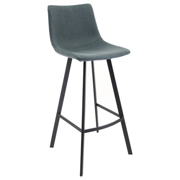 Elland Modern Upholstered Leather Bar Stool with Iron Legs and Footrest, Peacock Blue